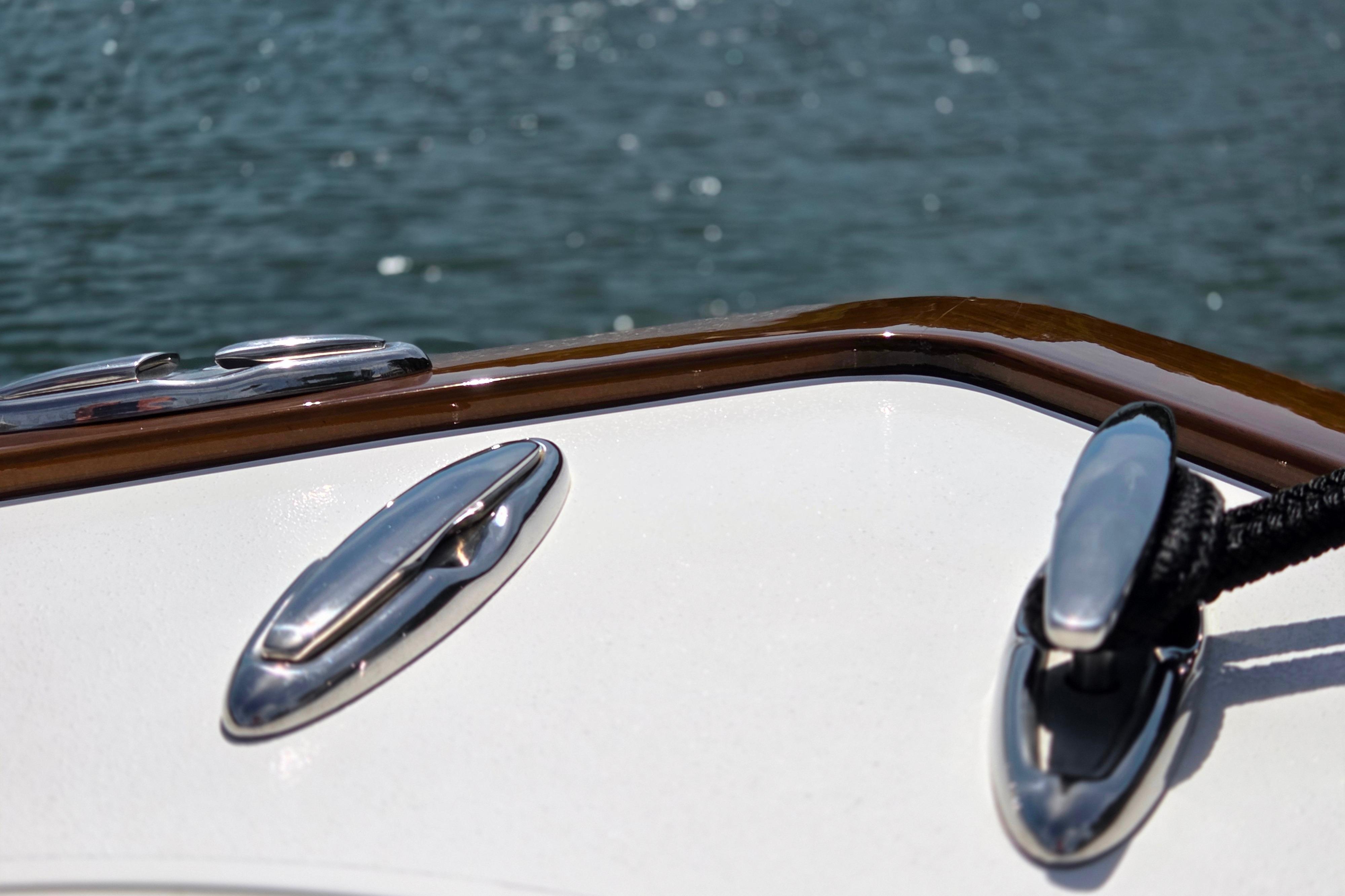 - Rub rail painted white with stainless steel insert