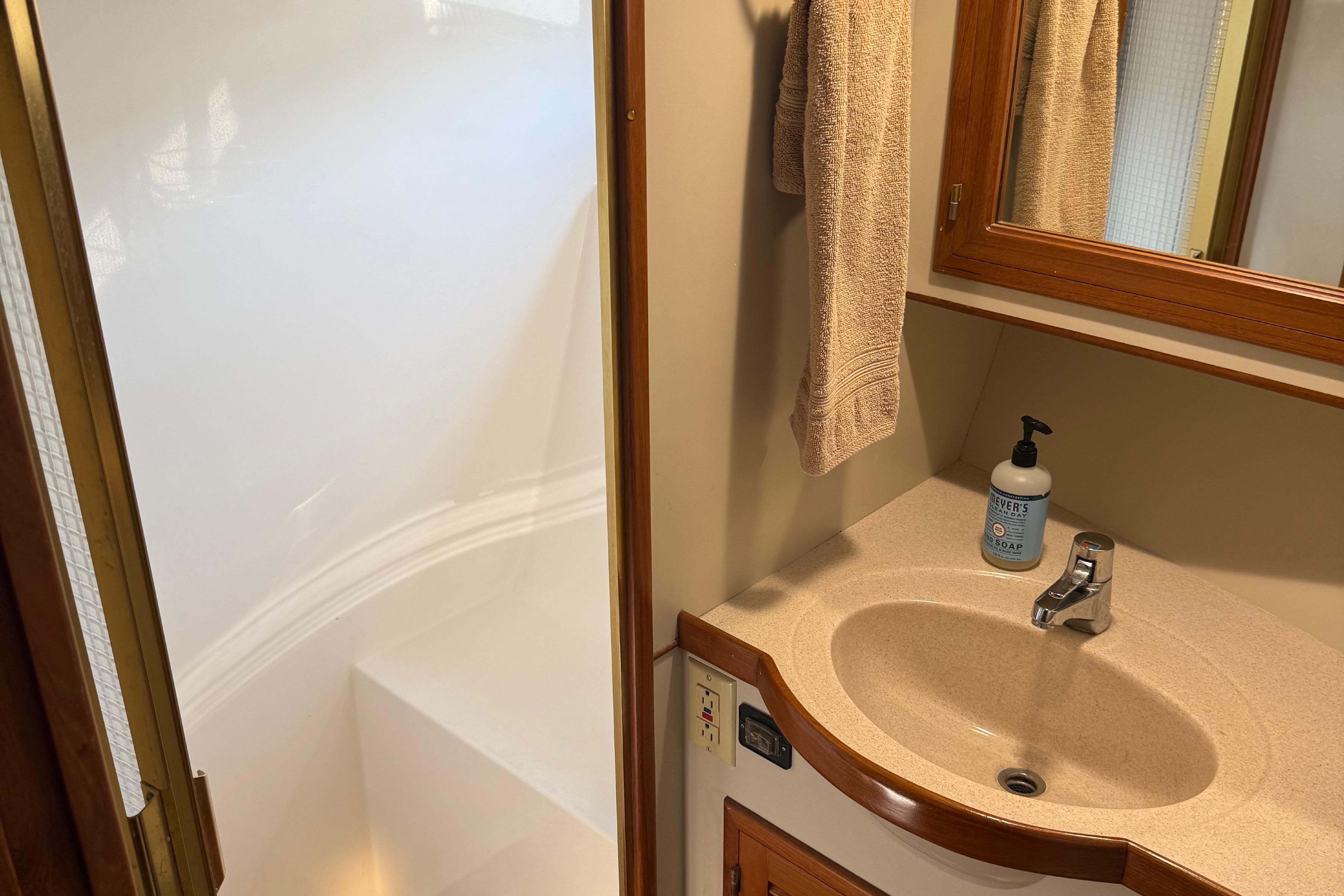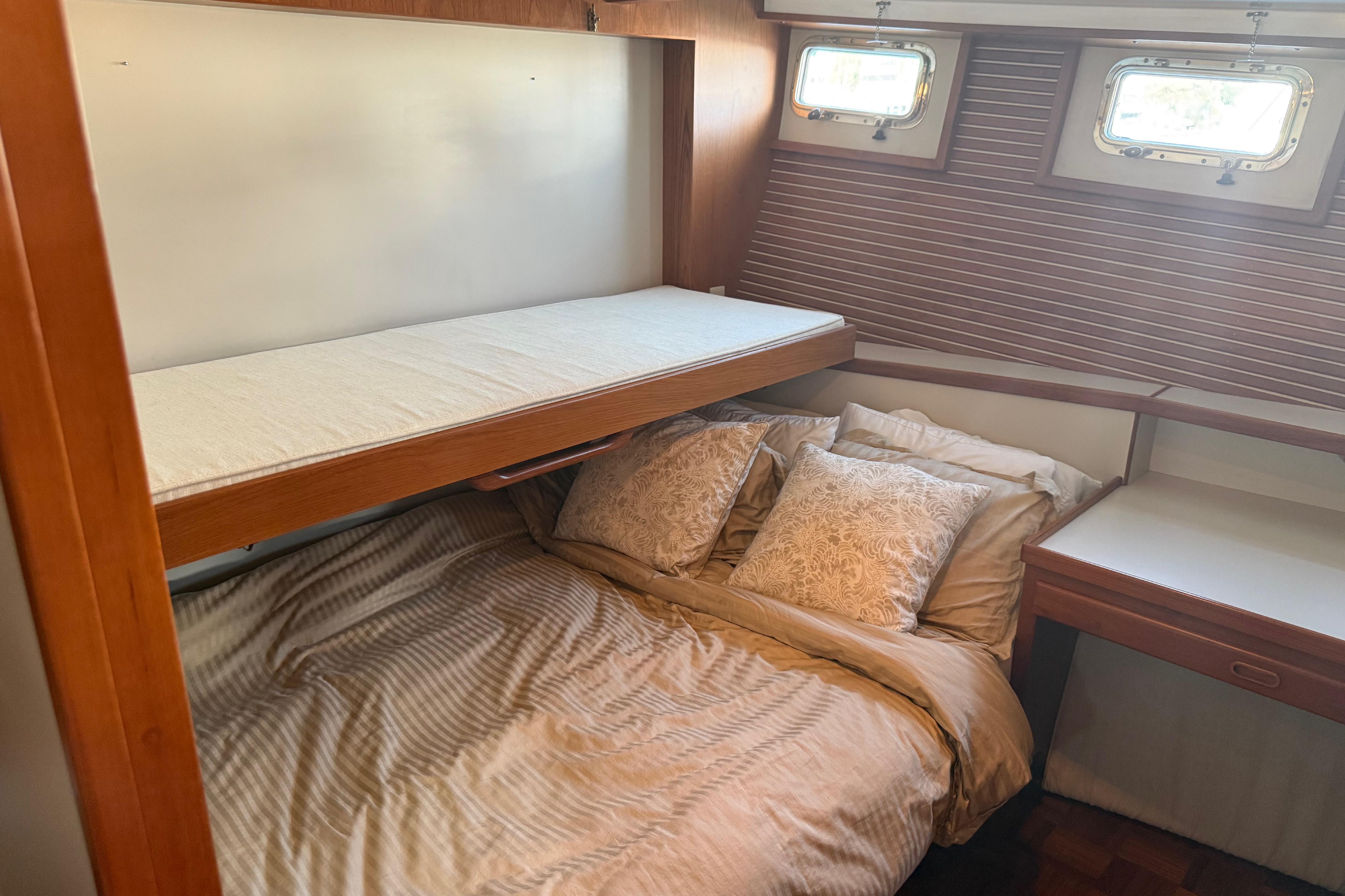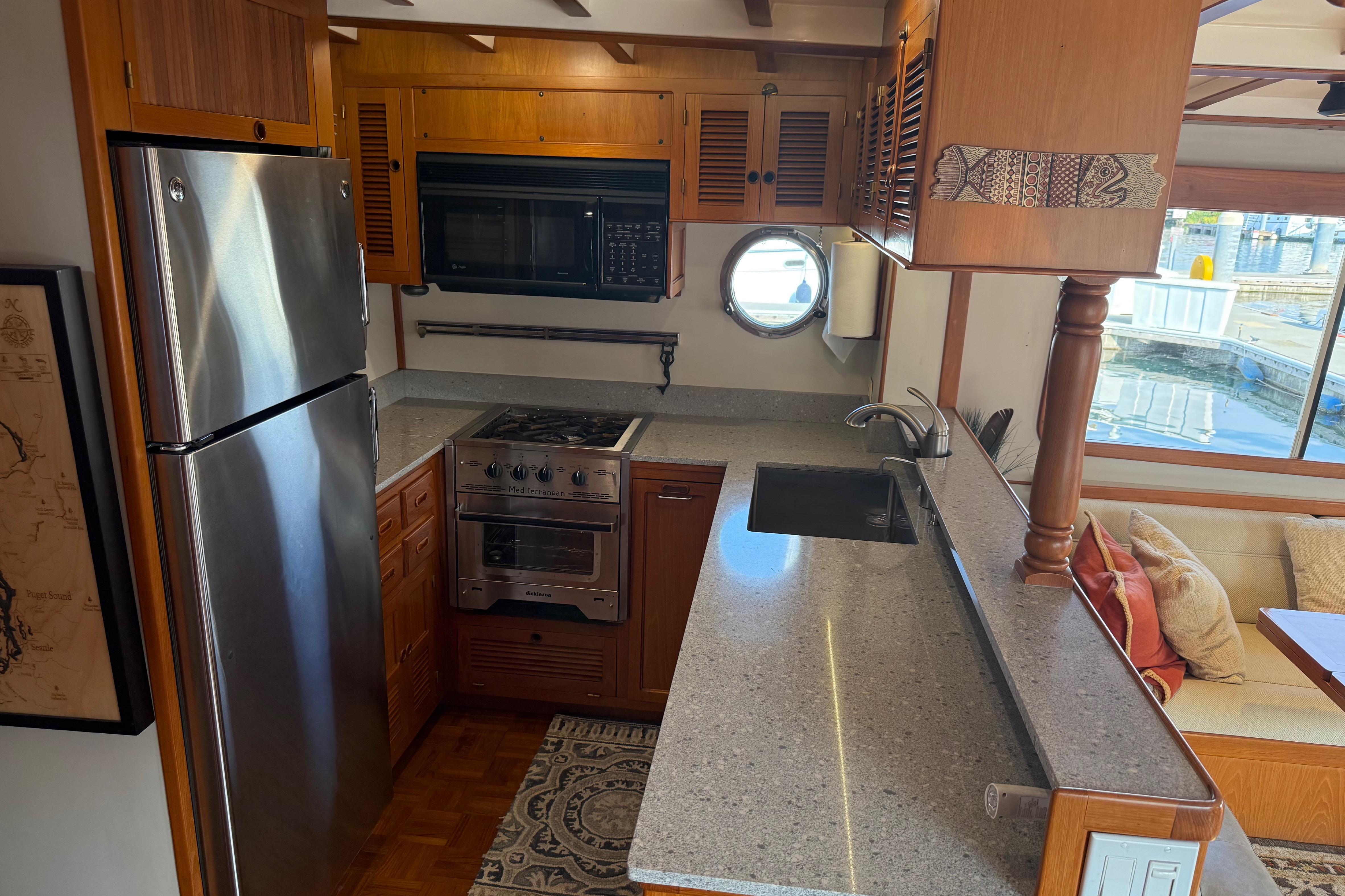 BEAUTIFUL CLASSIC WIDEBODY PILOTHOUSE TRAWLER!! With a great full side starboard walkway to the huge beautiful classic Pilothouse and on through to the bow area. From the very spacious covered cockpit area you step straight into a full width salon with an office desk on the port side and a great galley to the starboard with it's upgraded granite countertops. Then moving forward it is few steps up into the huge pilothouse or a few steps down into the hallway to two very spacious staterooms and two heads. The master stateroom is forward with it's island queen and lots of storage and closet space. The second stateroom is smartly designed with large double bed also has a single murphy bed. This vessel has massive storage everywhere for long range cruising. It is stabilized with a Westmar System for a comfortable ride. It has a very popular efficient single 225 hp six cylinder John Deere with great range with it's 1000 gallon fuel capacity.