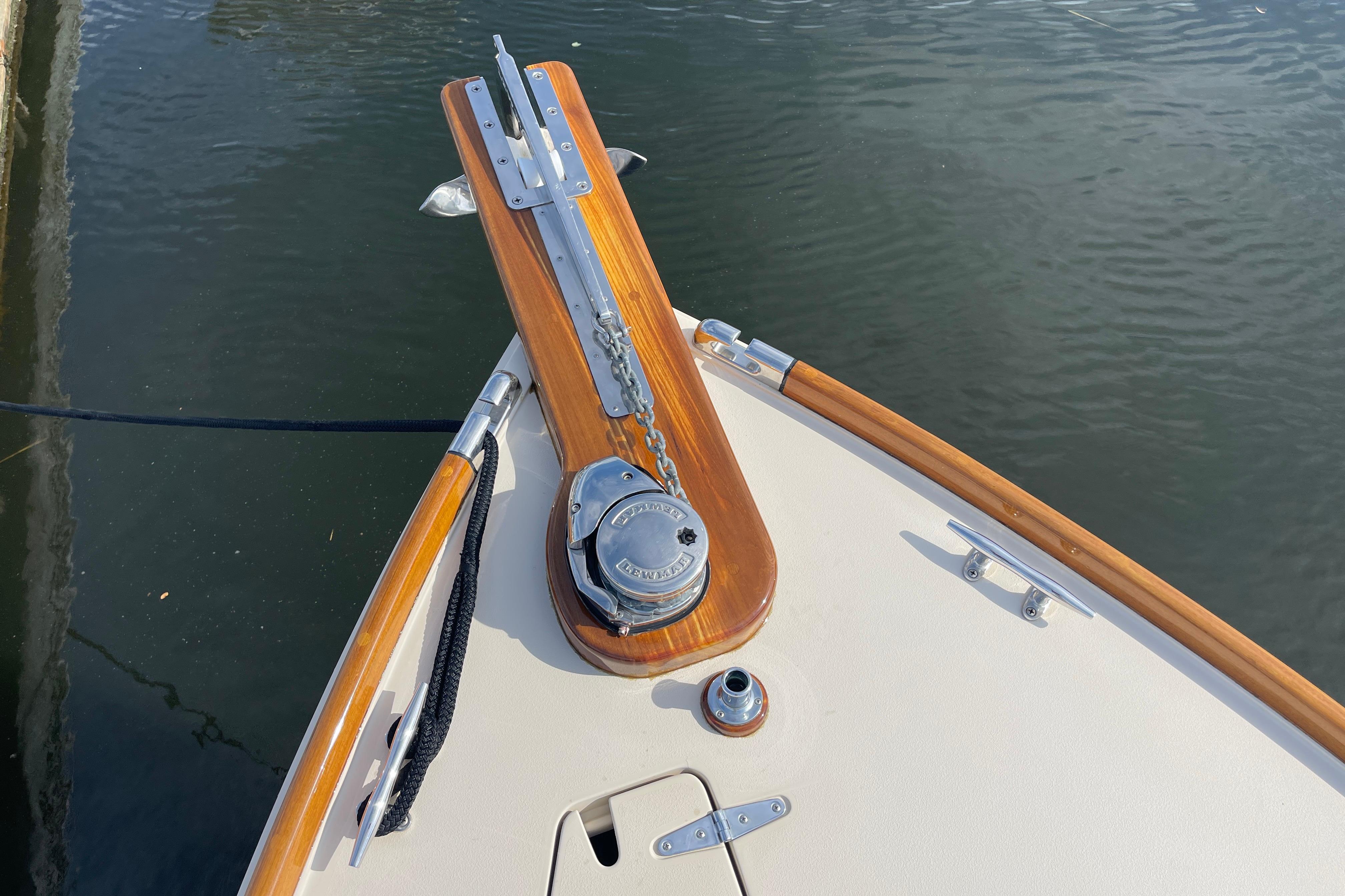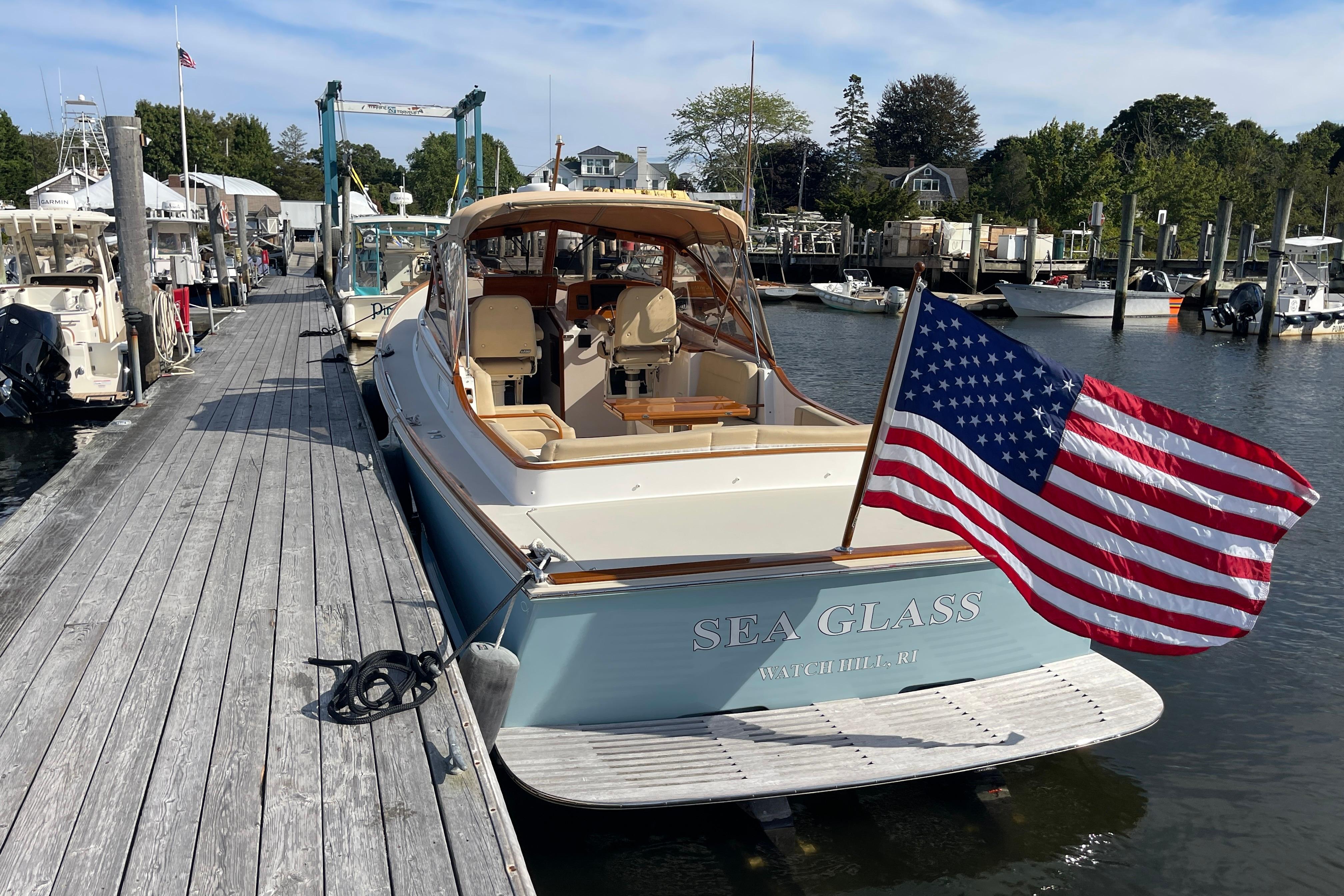 A head-turner in every harbor, SEA GLASS is a stunning example of this highly regarded CH Marine built Shelter Island Runabout (Hull #56). Offered for sale by her original owners, she is extremely well-equipped and has been meticulously cared for, proactively maintained and upgraded to the highest standards. She has been appointed with multiple options including her beautiful custom sea shell blue Awlgrip hull, complimentary designer upholstery through-out, a satin-varnished cherry interior, Yanmar Joystick control system, pilothouse controlled anchor windlass and much more.