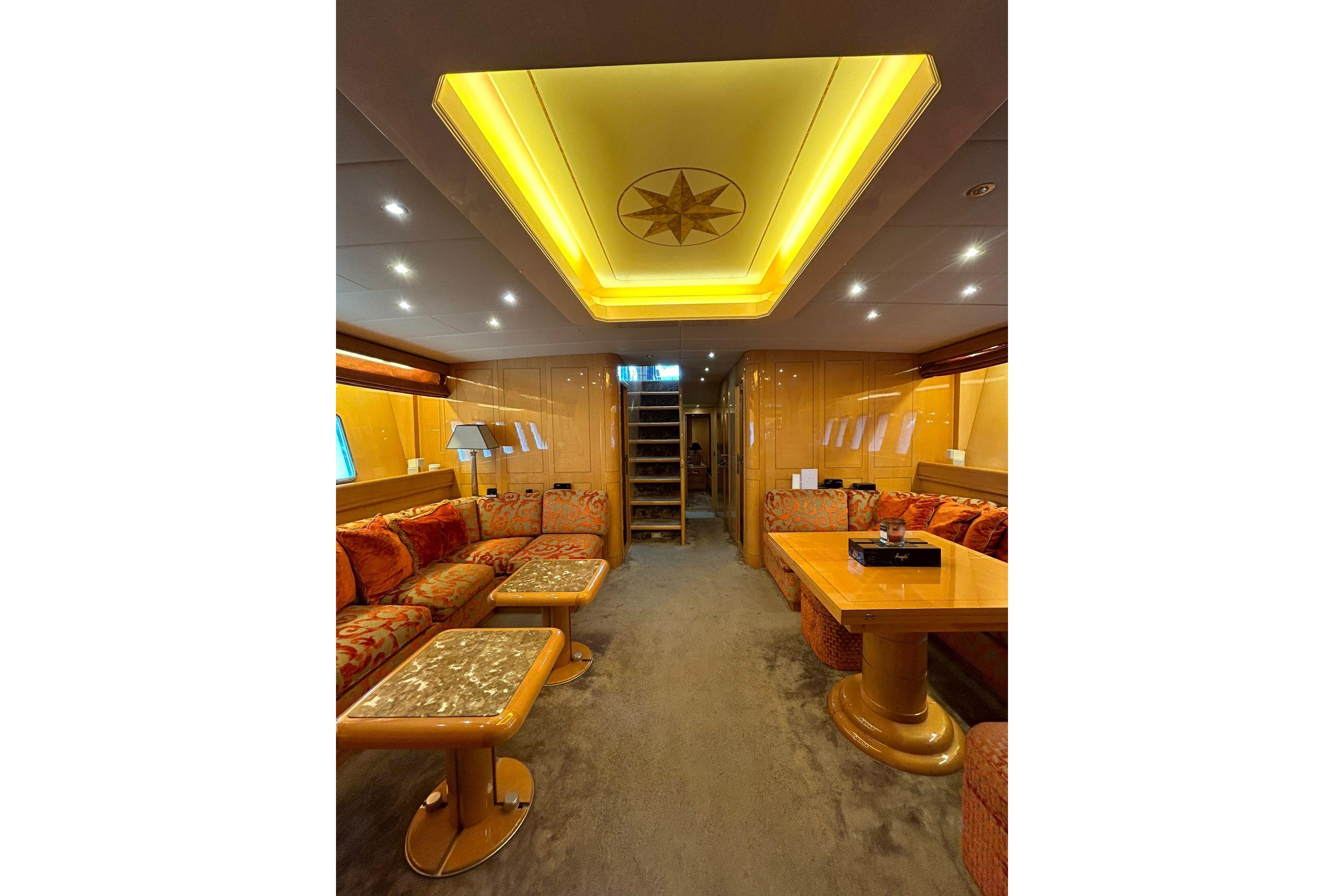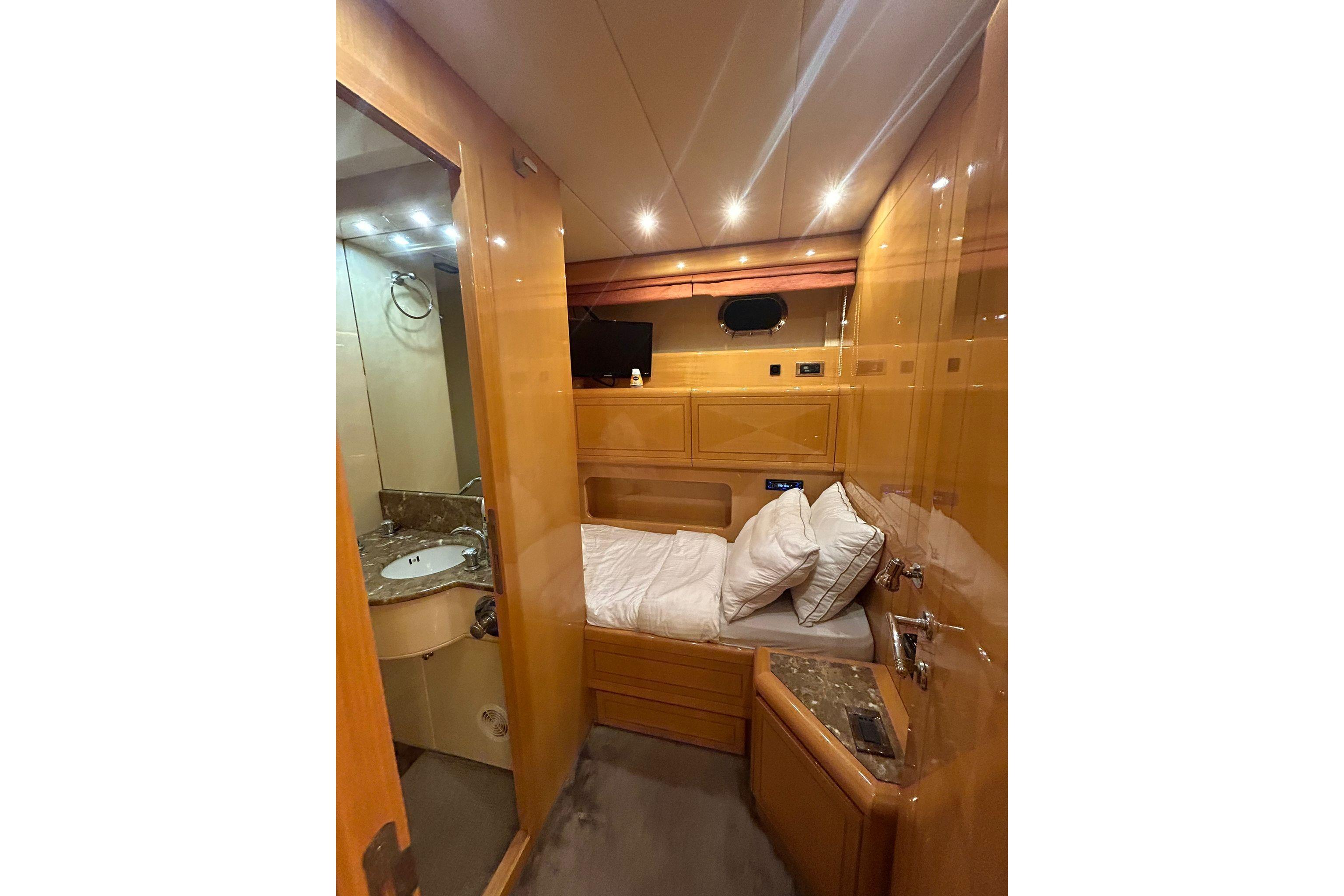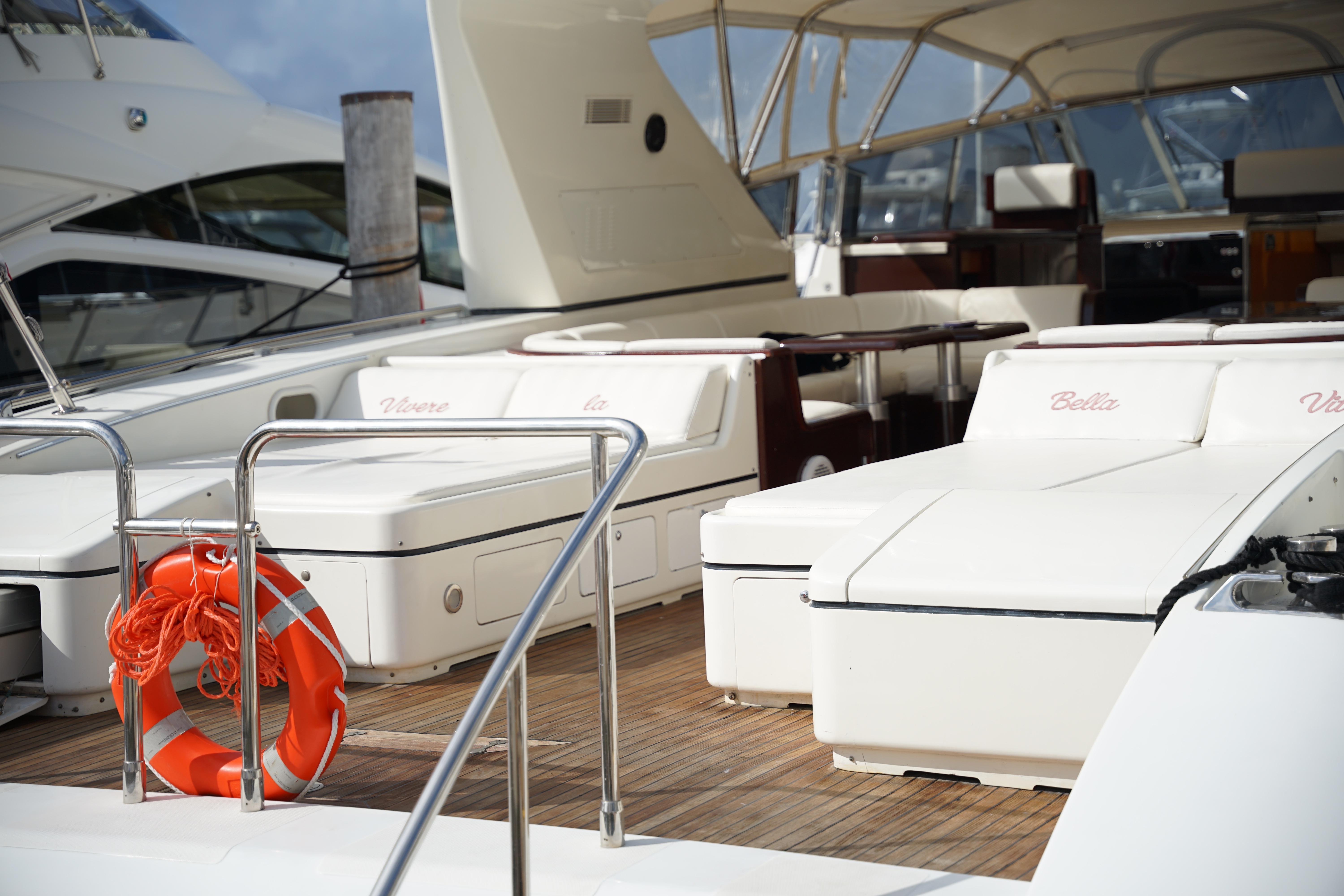 Elegant Accommodations: Step aboard and immerse yourself in an atmosphere of sophistication and comfort. The interior features classic Italian styling with rich wood finishes and luxurious fabrics. Accommodating up to 8 guests in 4 staterooms, including a sumptuous master suite, a VIP stateroom, and two twin cabins, all with en-suite facilities, this yacht ensures a relaxing and private retreat for all guests. The spacious salon offers ample seating, a dining area, and an entertainment system, making it perfect for socializing and unwinding.
