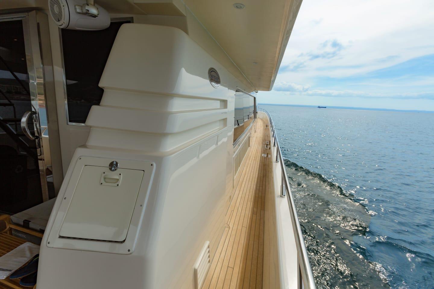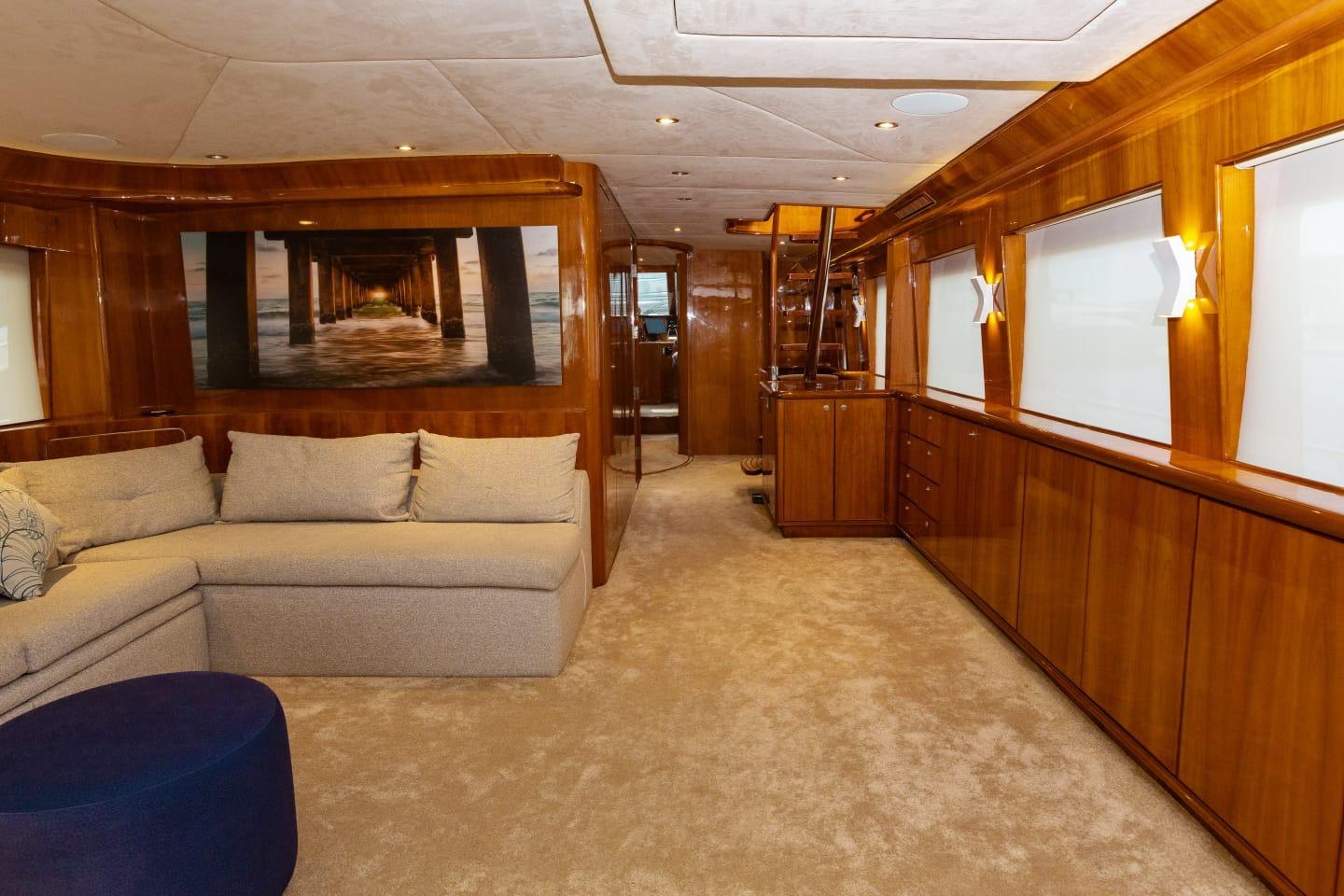 • Pilothouse down to lower level Carpet or teak/holly with wood handrail and accent rope lighting
