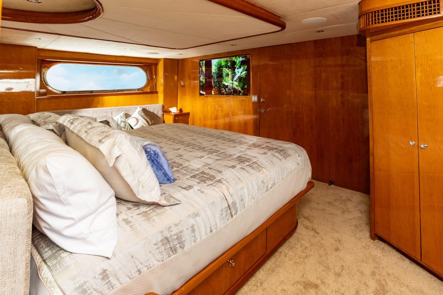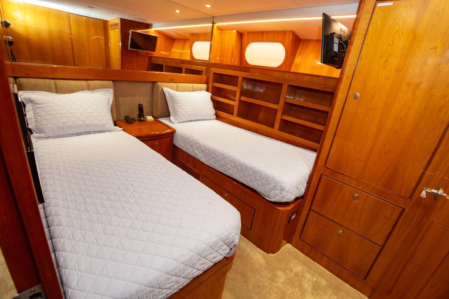 Full Beam Master with centerline queen berth, (2) Guest rooms each with