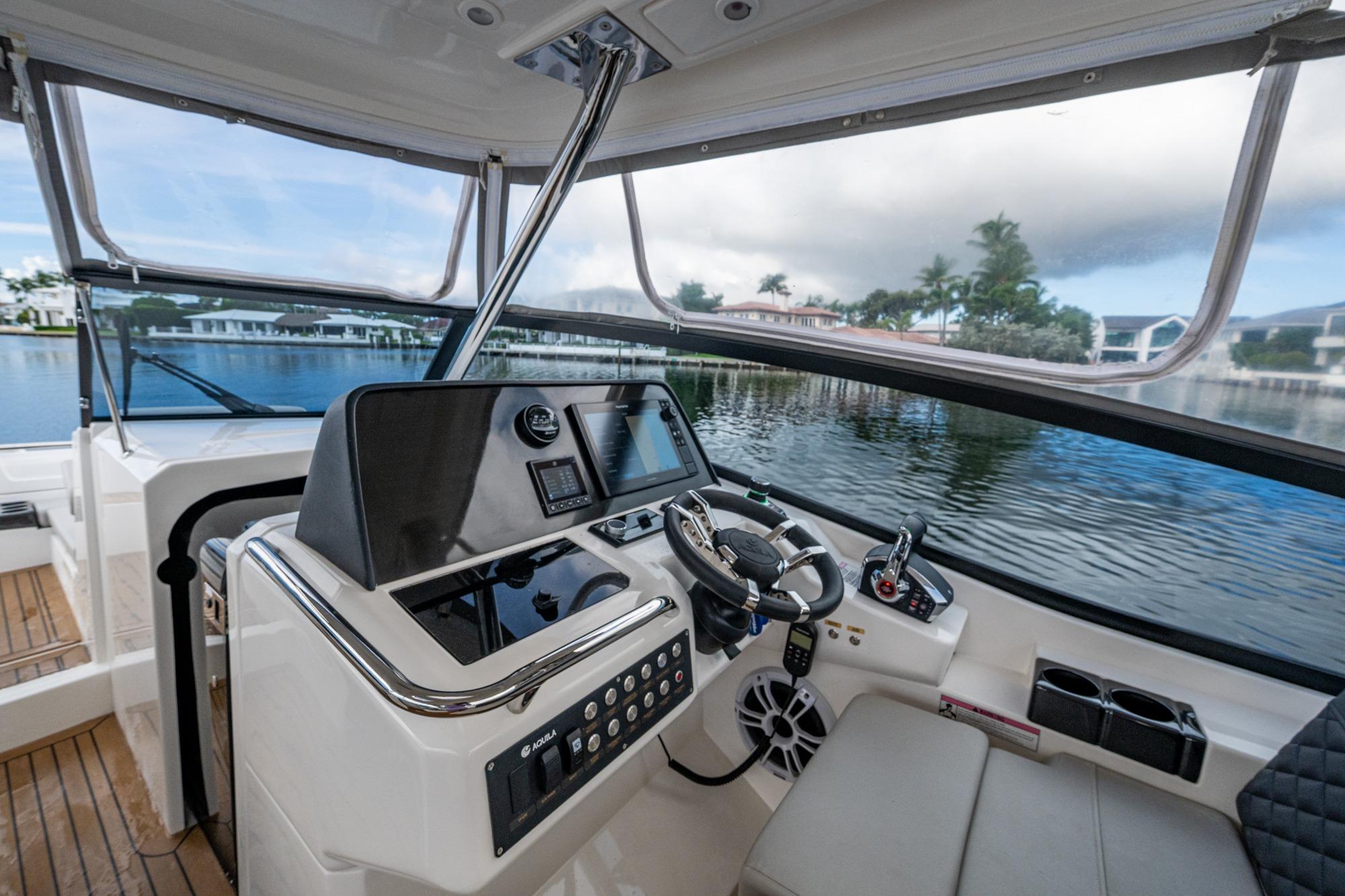 This Aquila 32 is the ultimate day boat and weekender, delivering the handling and efficiency of a power catamaran with the style and comfort of a luxury cruiser. With joystick control, premium Raymarine electronics, and exceptionally low hours, it represents a rare opportunity to own a nearly new model without the wait.