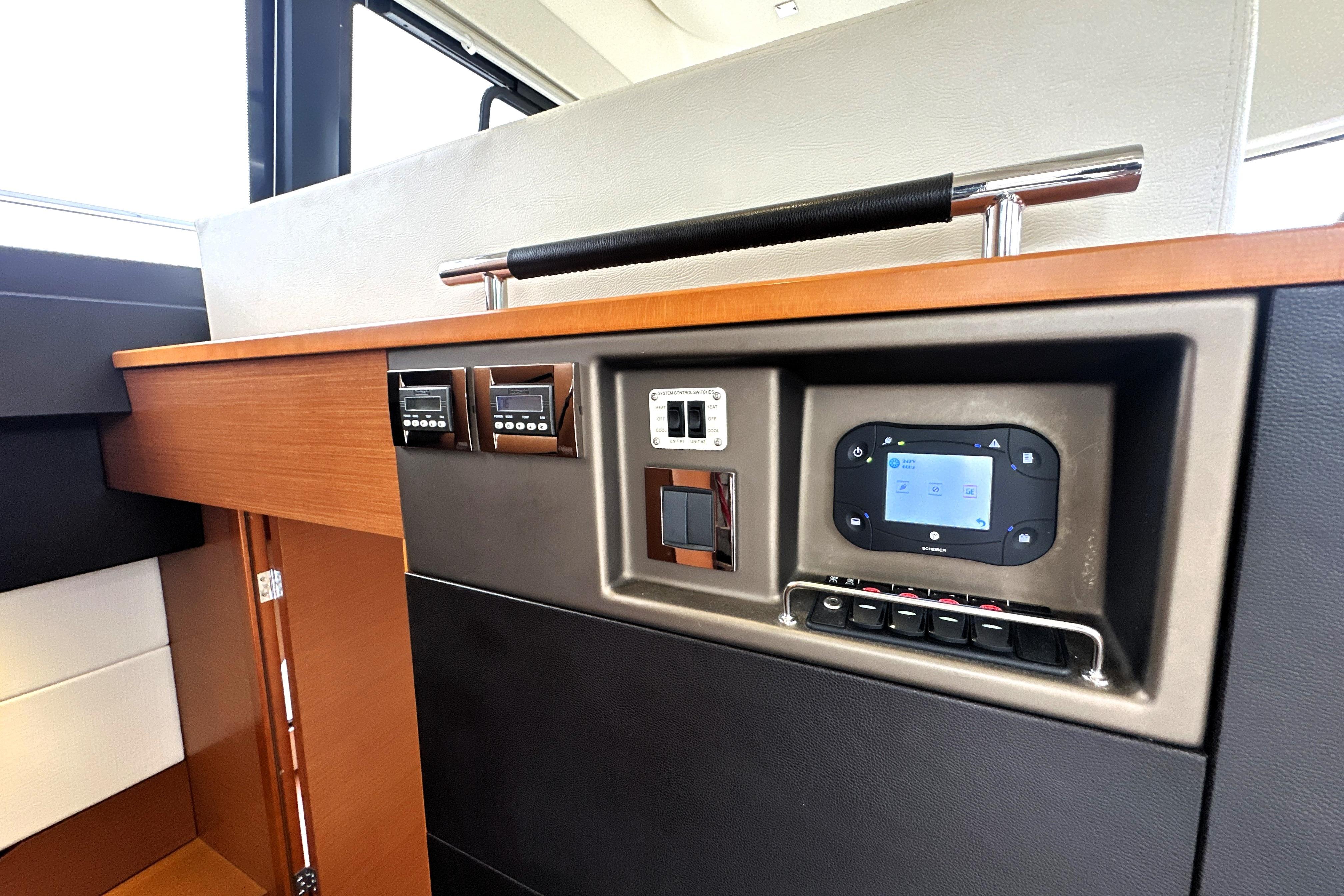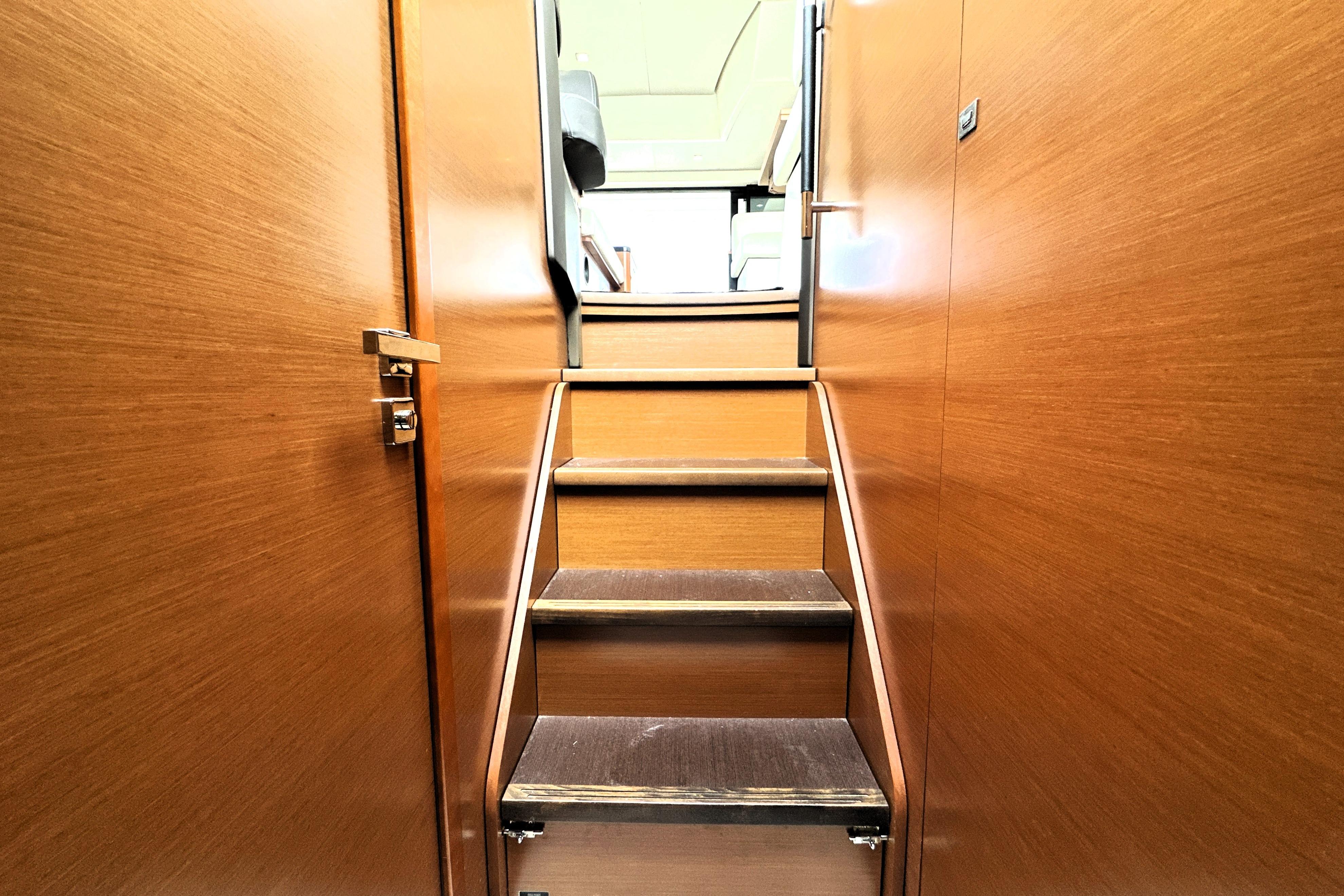 The galley is intelligently positioned for both entertaining and extended cruising. Equipped with premium appliances, abundant storage, and a functional layout, it ensures seamless meal preparation. An ice maker, washer/dryer combo, and central vacuum system add to the yacht’s convenience for longer stays aboard.