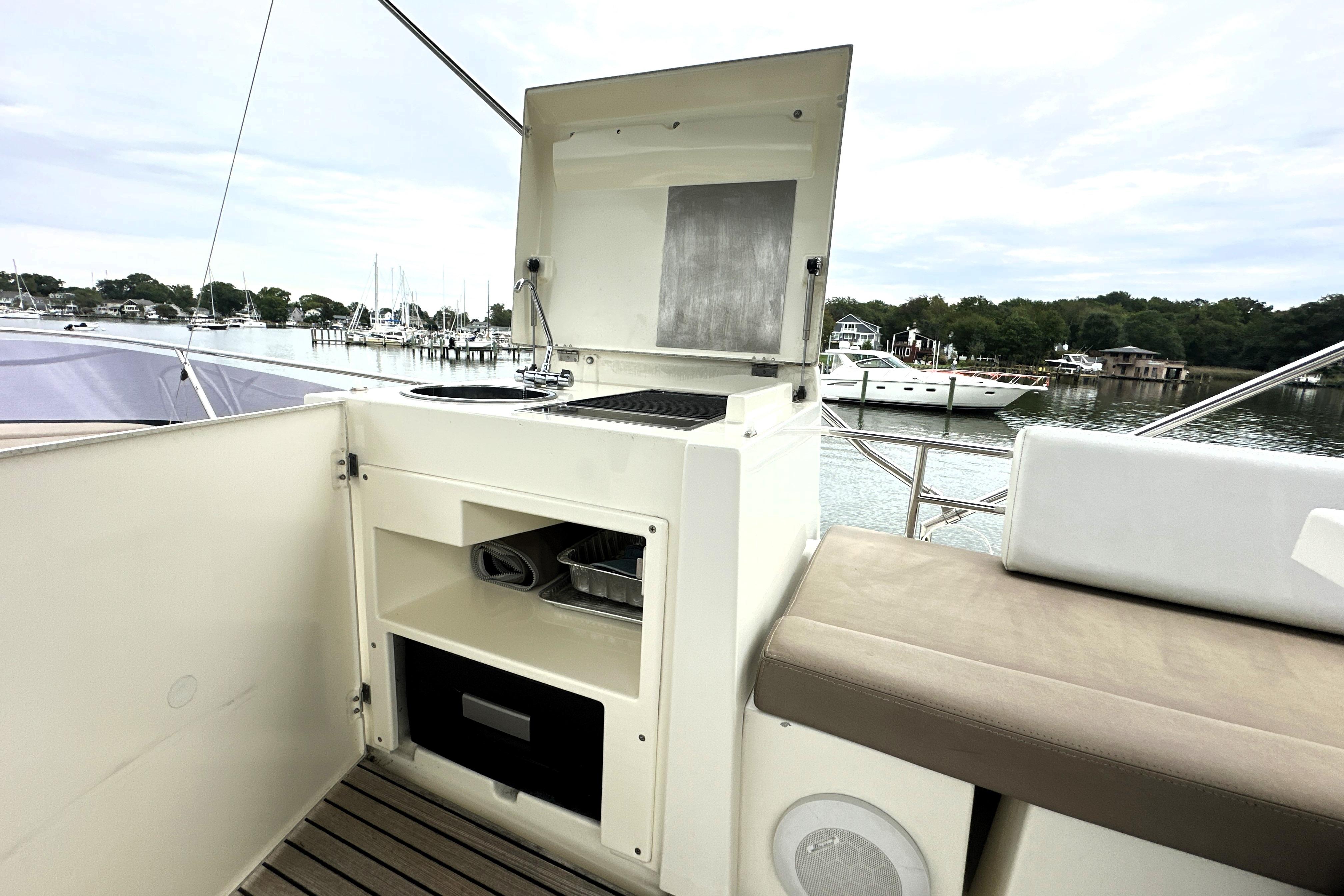 Flybridge galley with Taupe Bimini top