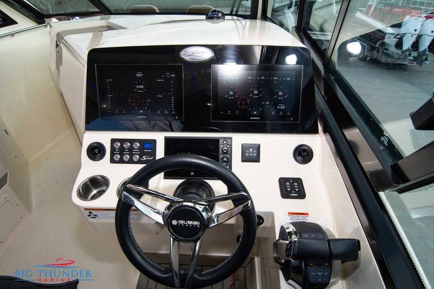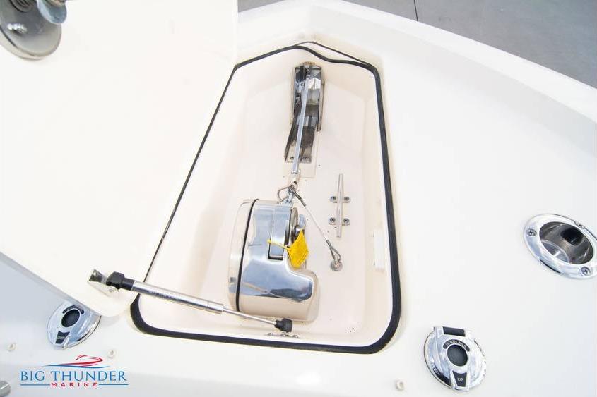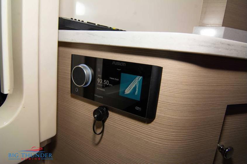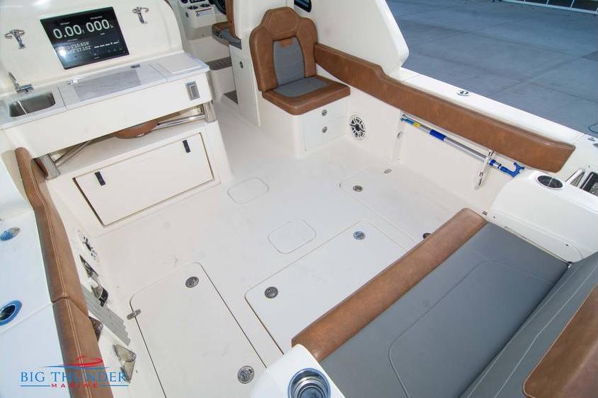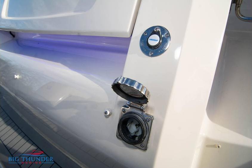 This one is loaded with high-end options and includes extended warranties on both the boat and engines. Key features include: