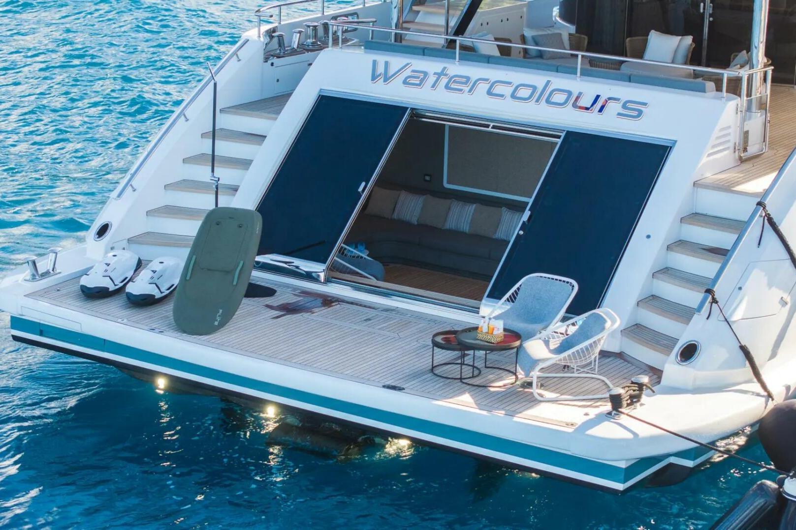 Representative of Benetti’s distinctive style, sophistication, and exclusivity, WATERCOLOURS is a stunning 44m tri-deck superyacht that embodies fine Italian artistry with exceptional performance. Built by the renowned Benetti shipyard, this yacht masterfully balances cutting-edge design and luxurious features for an unparalleled blend of adventure and relaxation, enhanced by state-of-the-art stabilizers for ultimate cruising comfort. As the flagship fiberglass motor yacht of the Benetti fleet, she offers multiple seating areas, alfresco dining spaces, a foredeck jacuzzi, large swim platform, contemporary beach club, and an array of water toys.