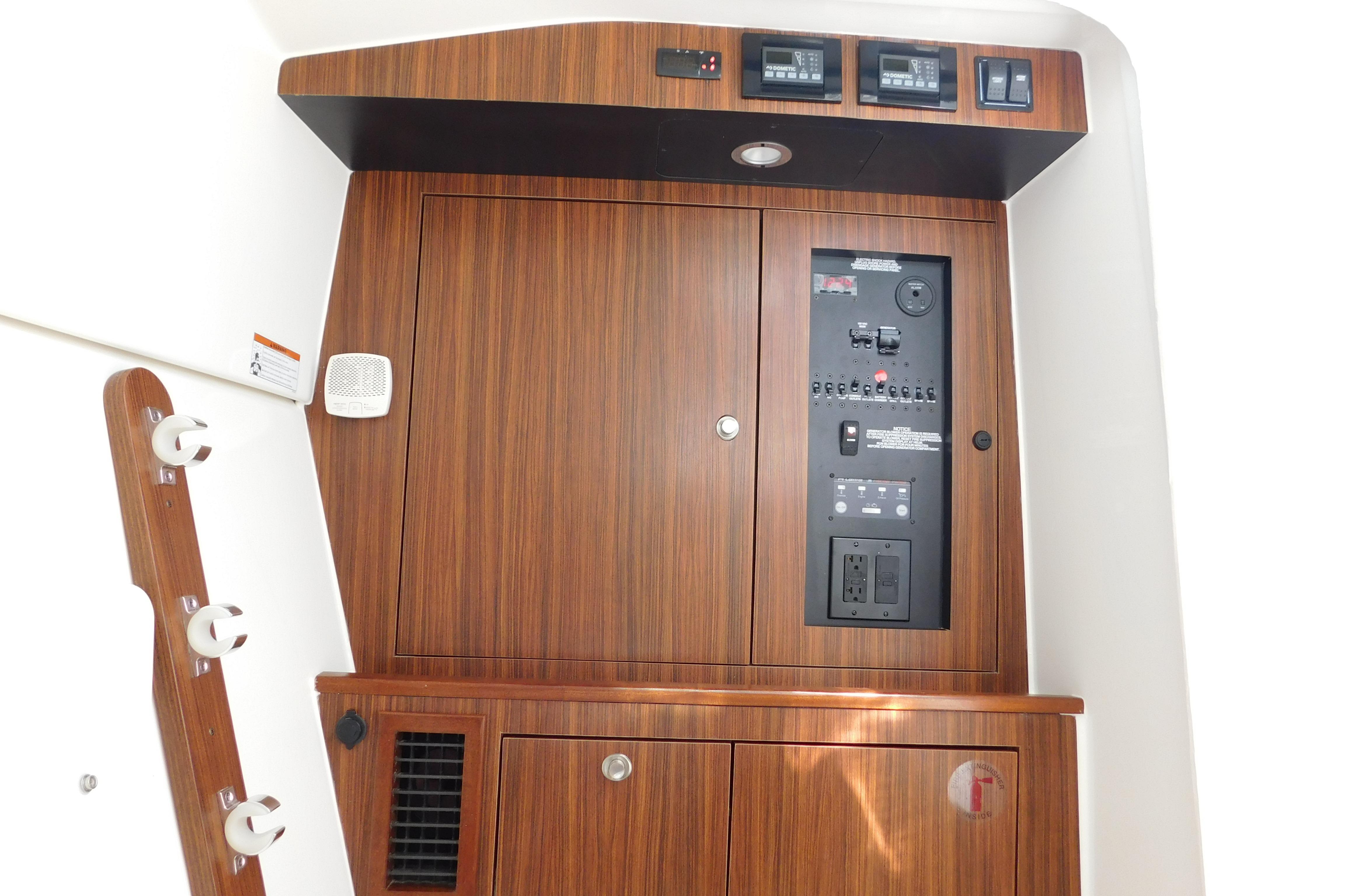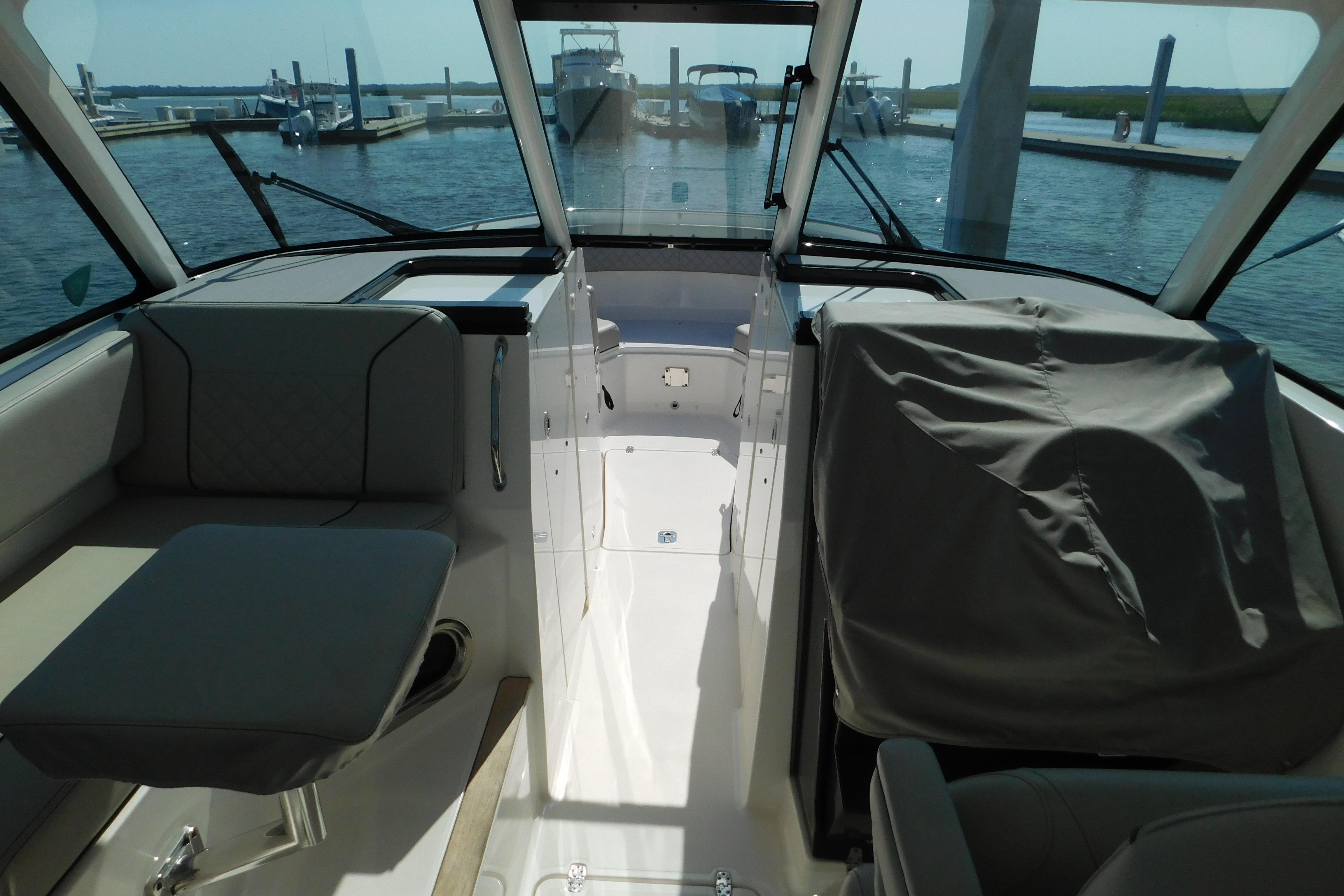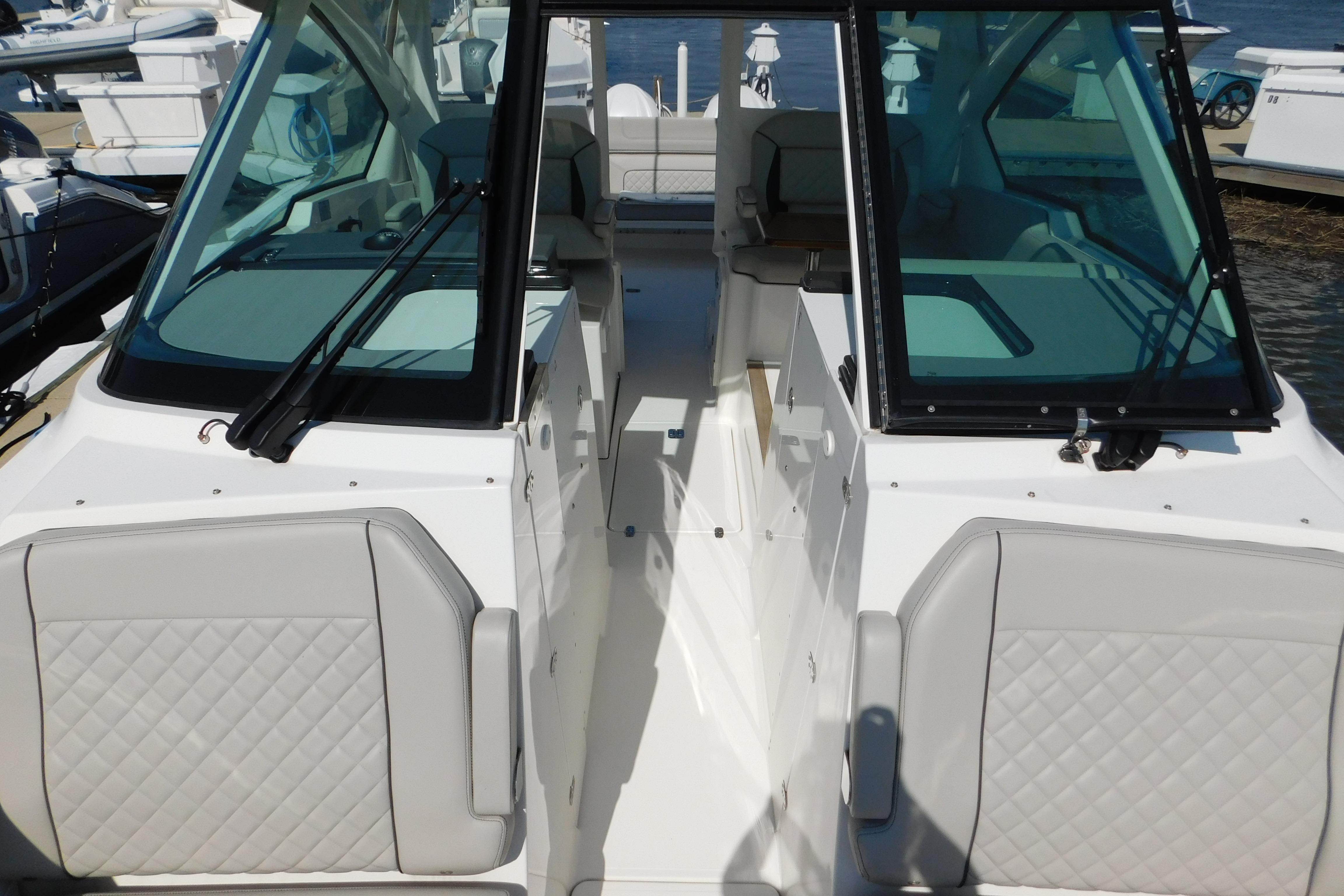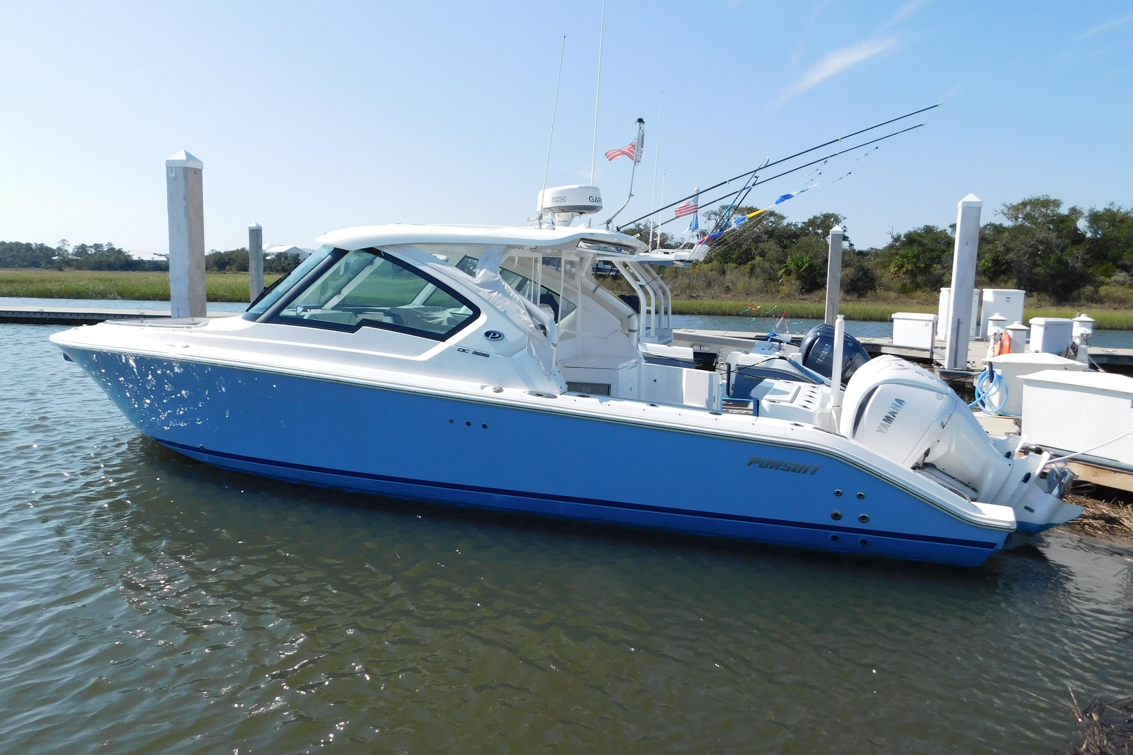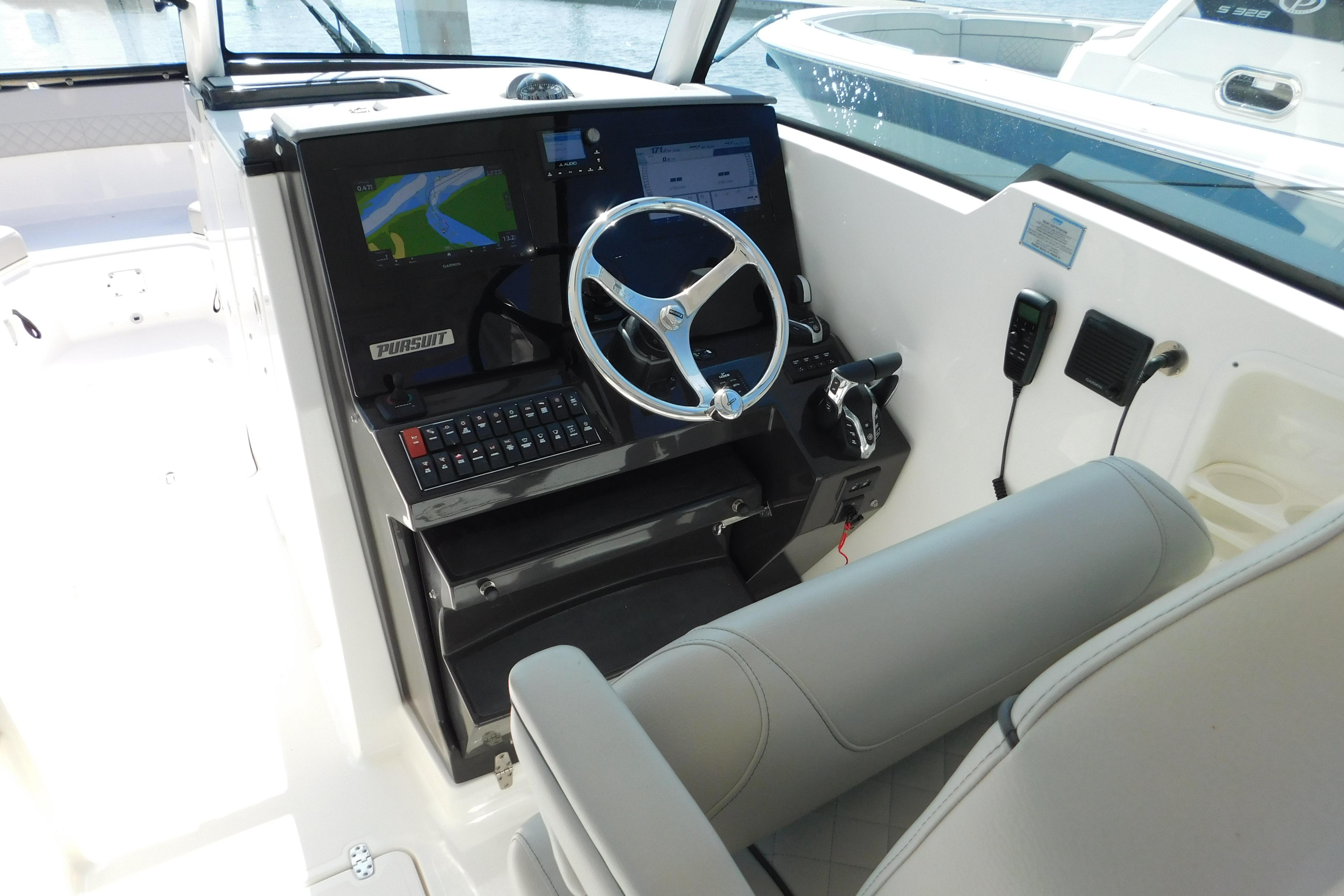 The DC 326 builds on the reputation of one of their most popular boats, the DC 325. The DC 326 features a fully integrated fiberglass hardtop with tempered glass windshield, thoughtfully designed storage and starboard hull side door - all with the distinctive aesthetic of Pursuit’s Dual Console series. A port side wrap-around lounge, rotating helm seat, forward bow and foldaway cockpit seating offer plenty of room for friends, family and crew while rod holders, recirculating livewell and dedicated tackle storage are ready to fish.