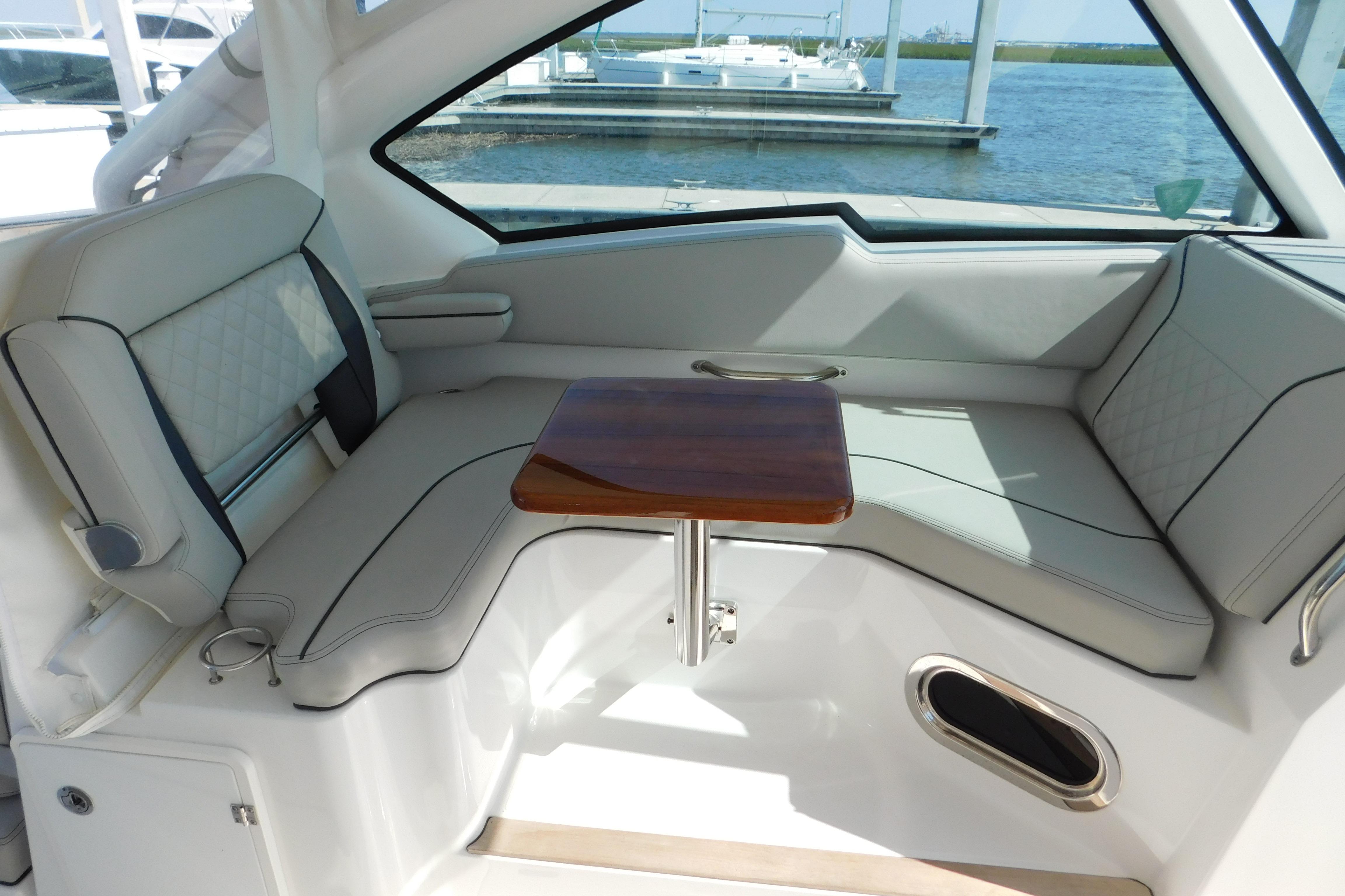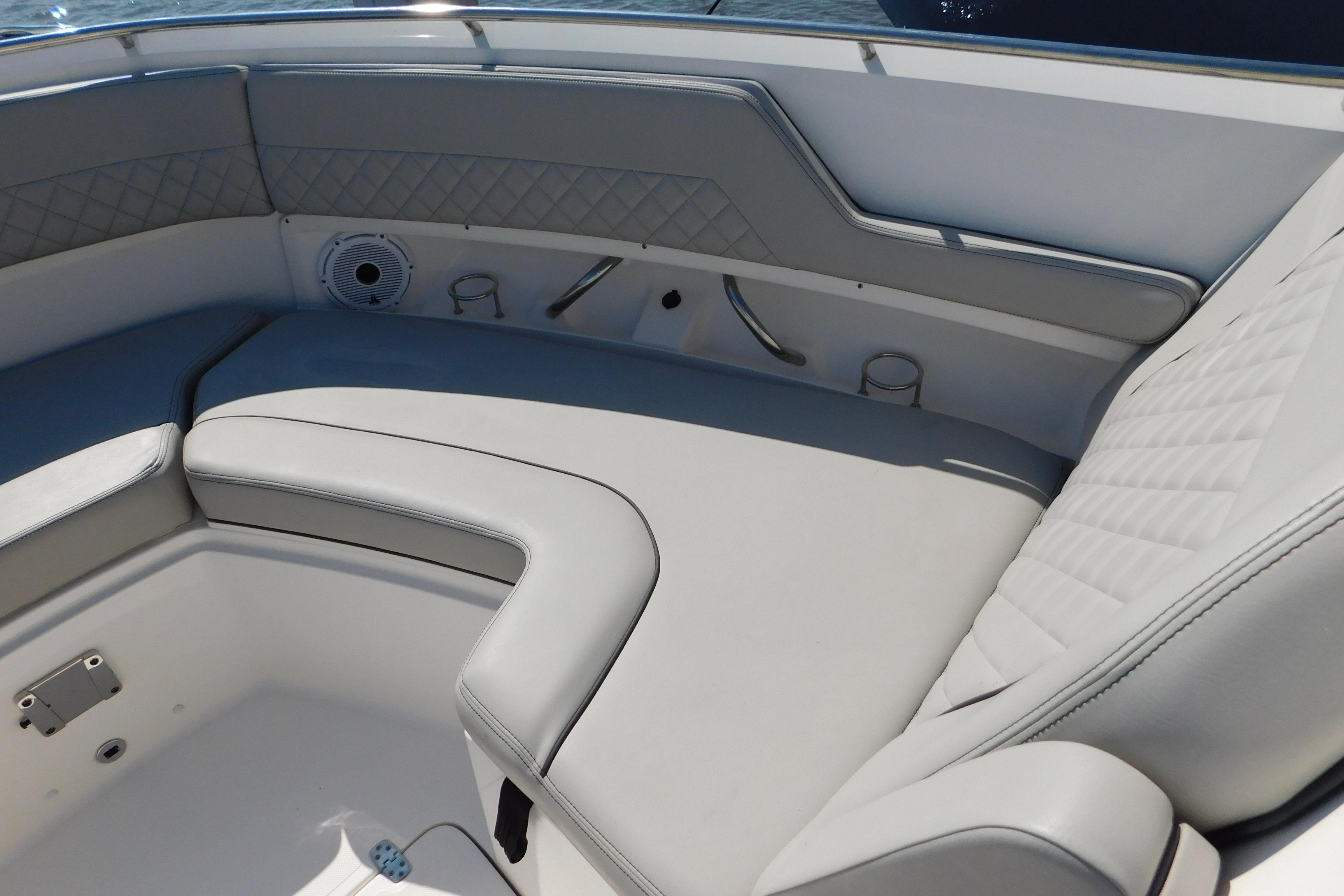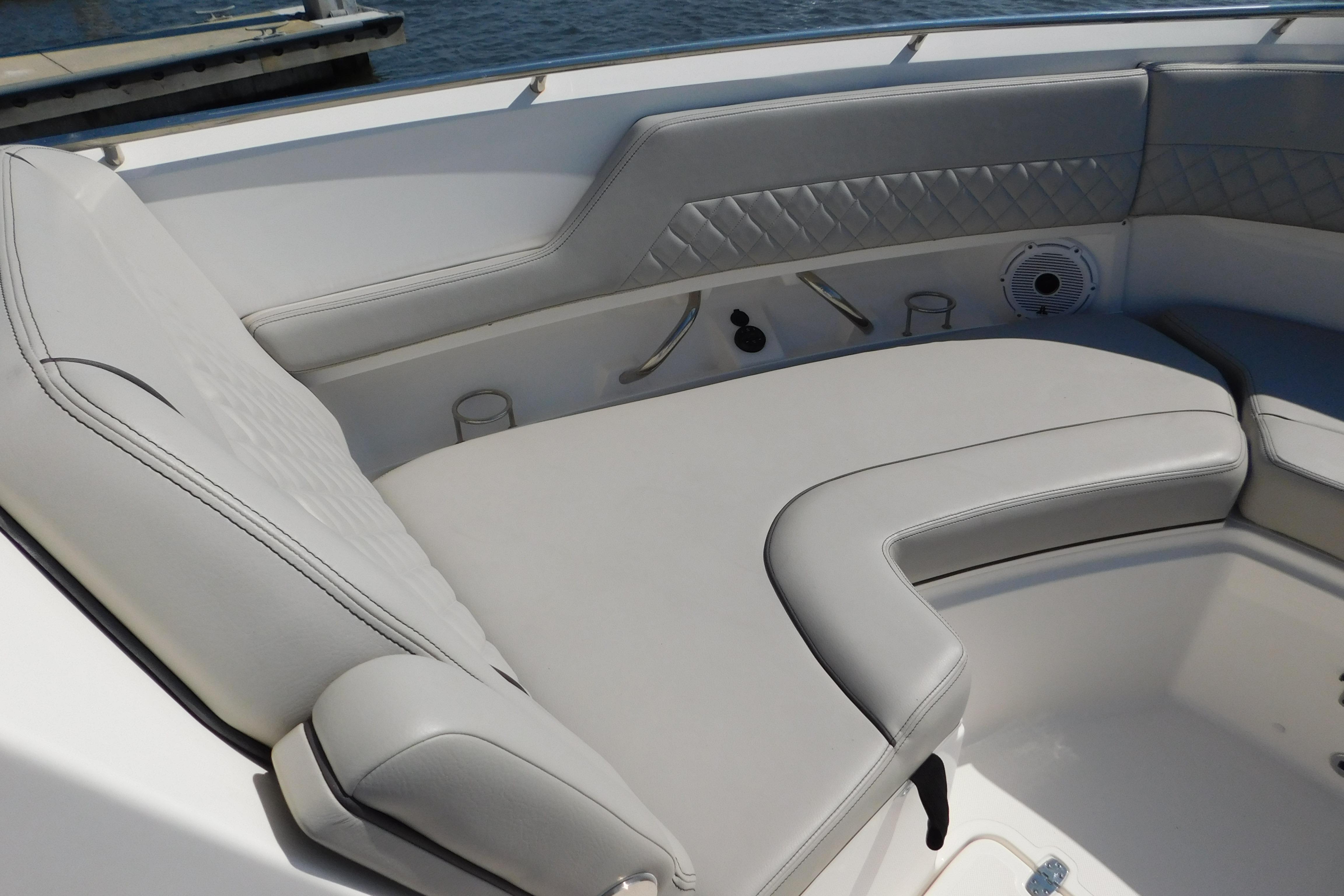 This is a special example of the very popular DC-326. The owners are very experienced boaters and have customized this vessel with a number of nice upgrades, including a custom painted hull & boot stripe, bottom paint with epoxy barrier coat, Sharrow propellers, SeaDek on the helm dash, galvanic isolator, ceramic coating of the whole boat and a number of other smaller touches that make this boat standout from the others. Power is provided by twin Yamaha F300 motors with 200 hours and extended Yamaha warranties thru 12/09/2029