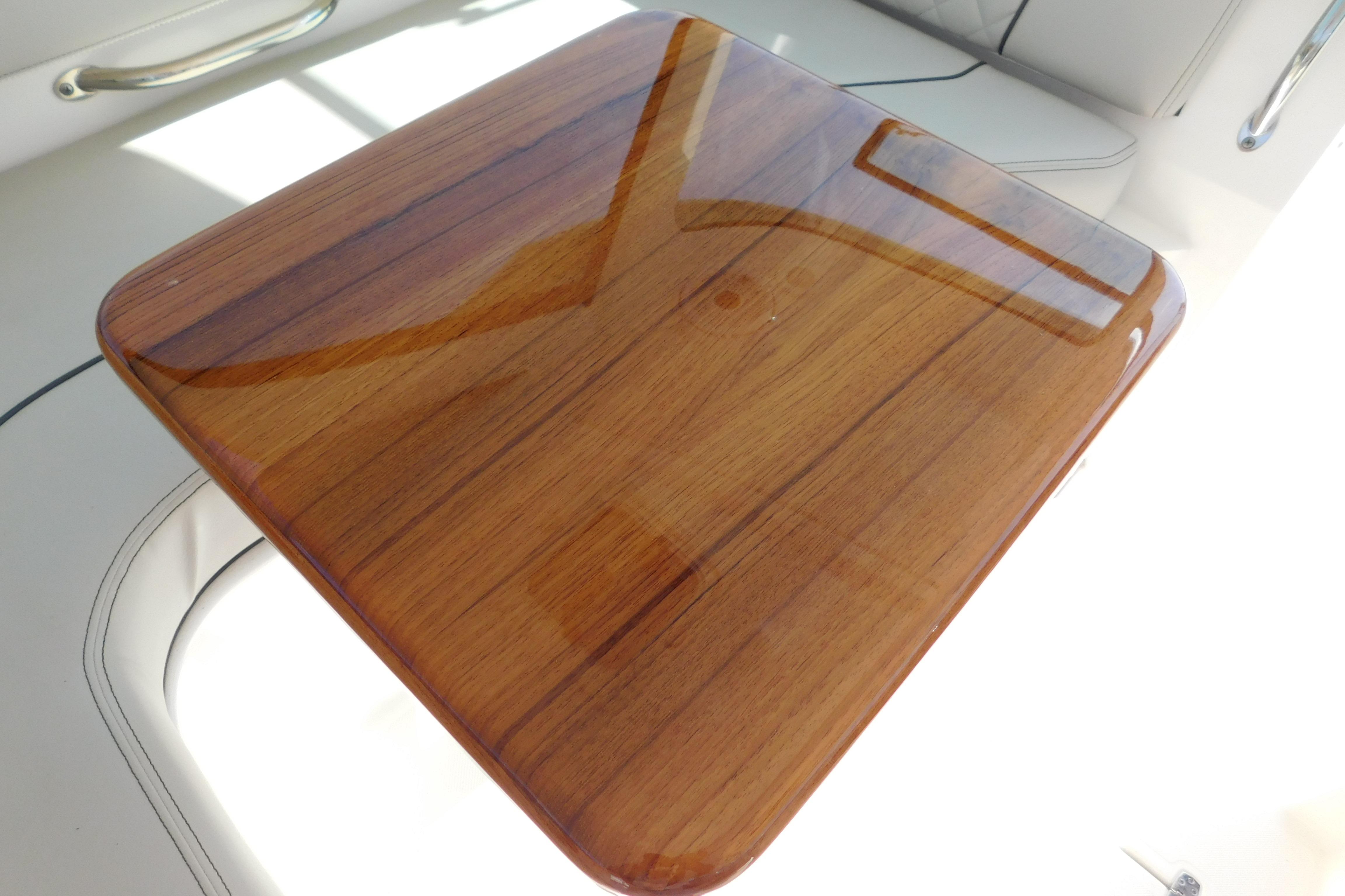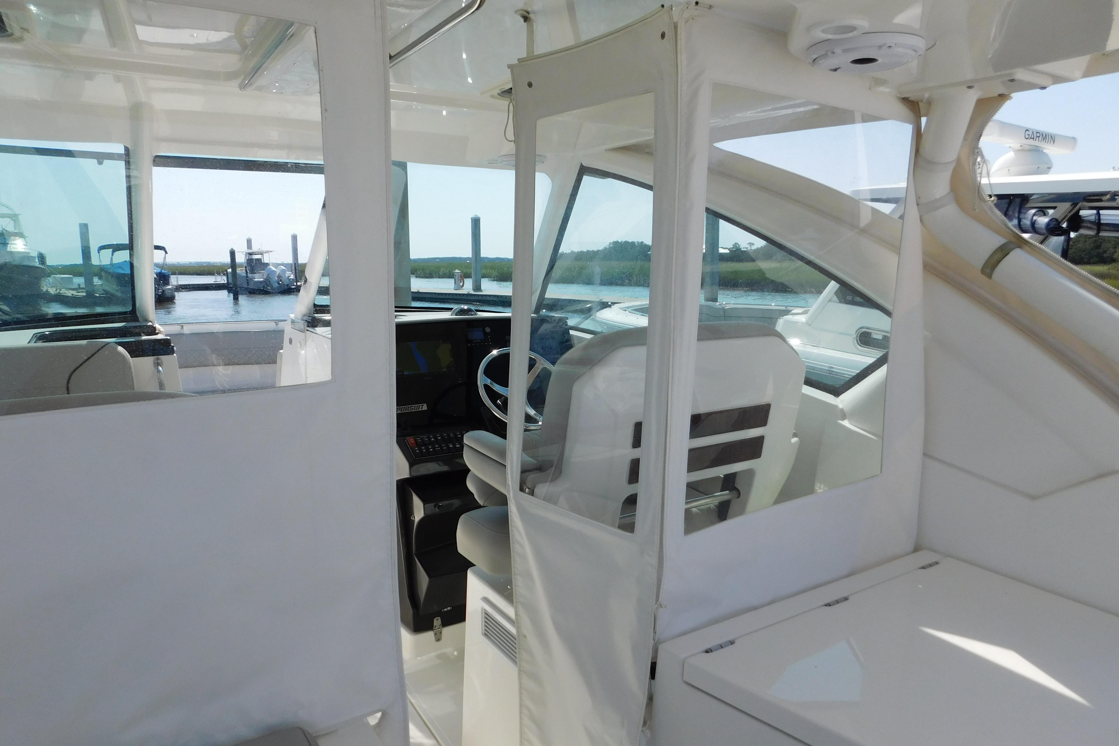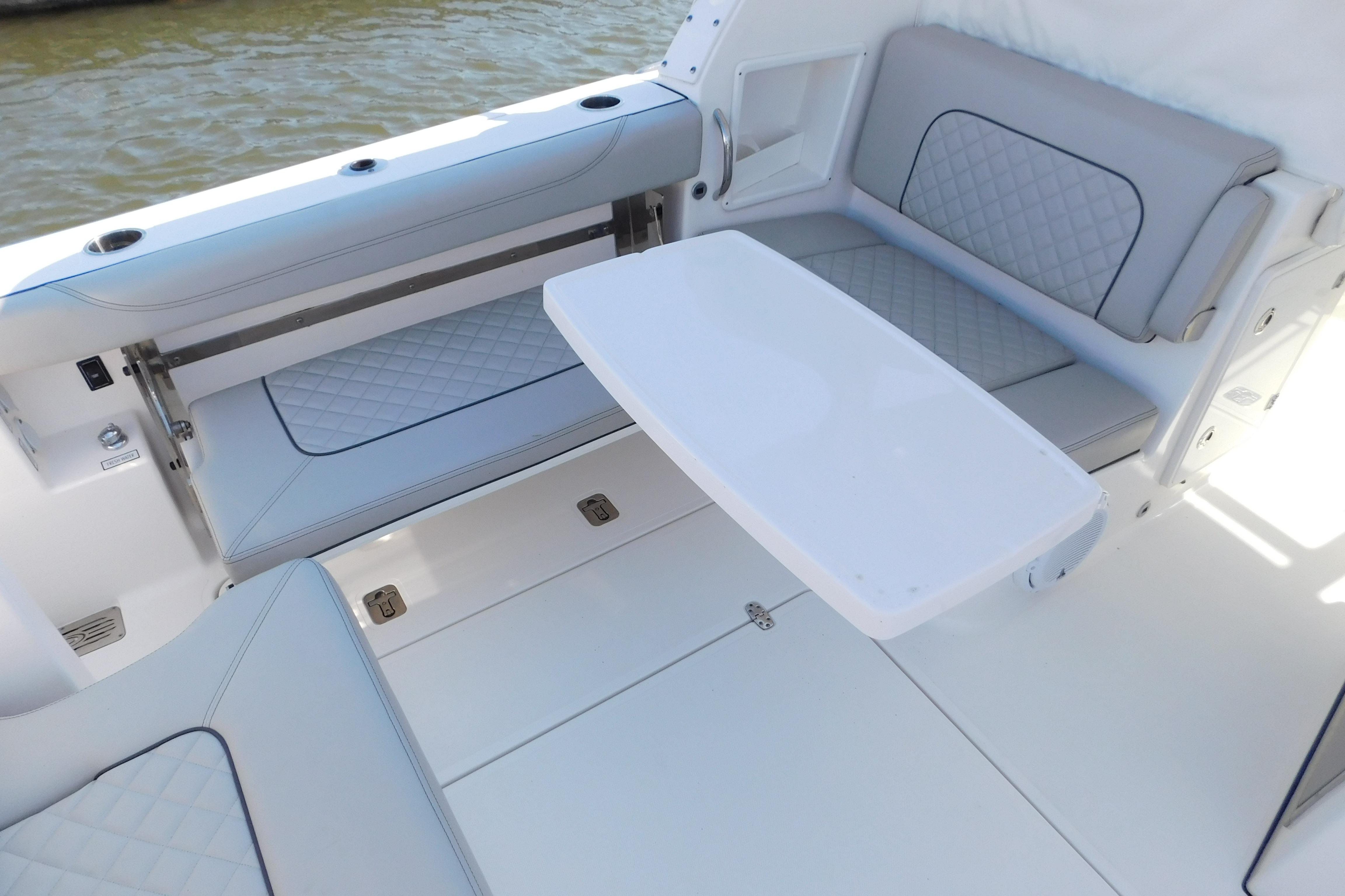 This is a special example of the very popular DC-326. The owners are very experienced boaters and have customized this vessel with a number of nice upgrades, including a custom painted hull & boot stripe, bottom paint with epoxy barrier coat, Sharrow propellers, SeaDek on the helm dash, galvanic isolator, ceramic coating of the whole boat and a number of other smaller touches that make this boat standout from the others. Power is provided by twin Yamaha F300 motors with 200 hours and extended Yamaha warranties thru 12/09/2029
